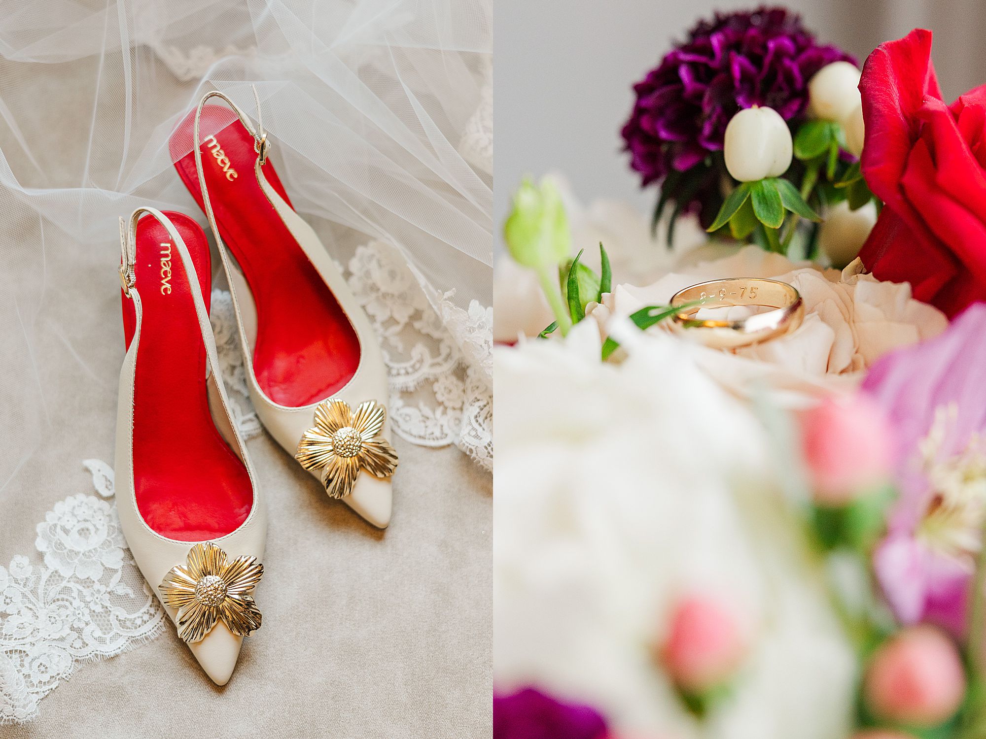 Inside the suite, Abbie had all her meaningful details waiting for me. I photographed the typical wedding details such as the dress and invitation and some special details like Abbie’s aunt’s sapphire ring and the groom’s ring that was originally his father’s, engraved with his parents’ wedding date and with Abbie and Richard’s wedding date added. Her mom and sister helped the bride get ready. Their closeness made this part of the morning especially sweet.