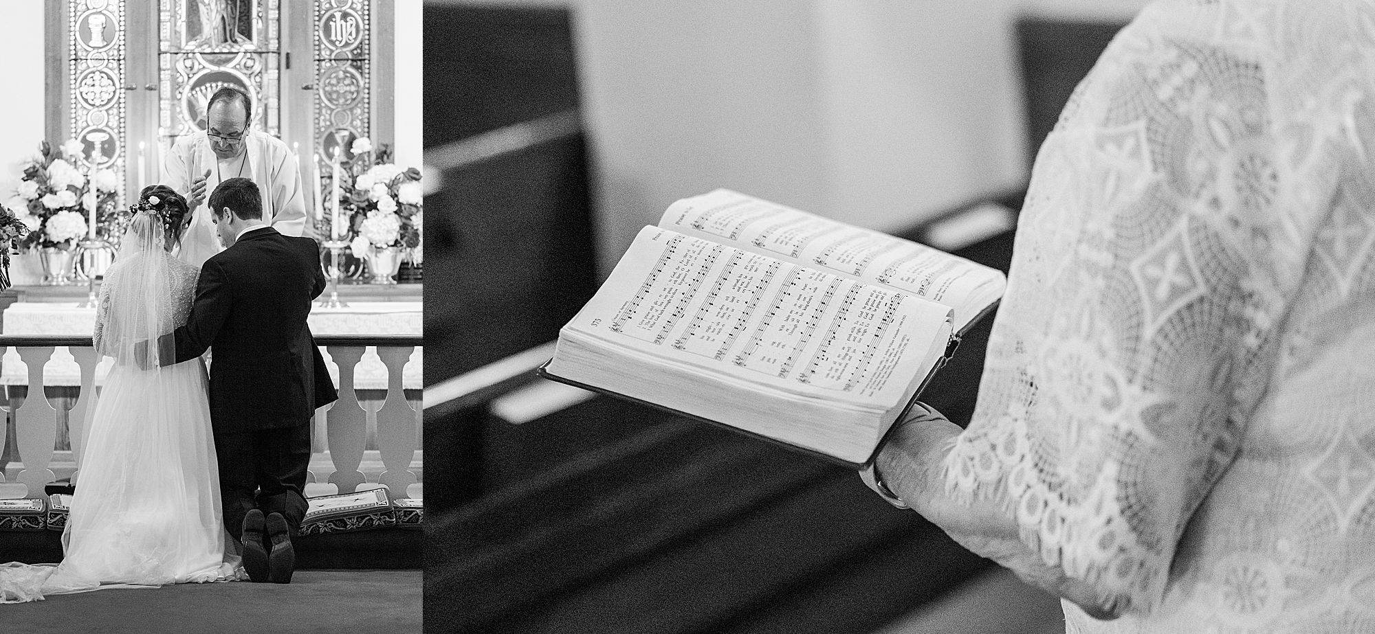 Guests began arriving as the sky darkened. The ceremony started after sunset, creating a warm, intimate atmosphere inside the church. The service was simple and heartfelt including a gift for the bride and groom from the officiant! Abbie and Richard walked out to cheers and a dip kiss in the aisle. The two signed their marriage certificate and then traveled to the reception. After the ceremony, Abbie changed into a second dress at the reception. Instead of bustling her long sleeve gown with a train, she transitioned her into her new look which was equally beautiful.