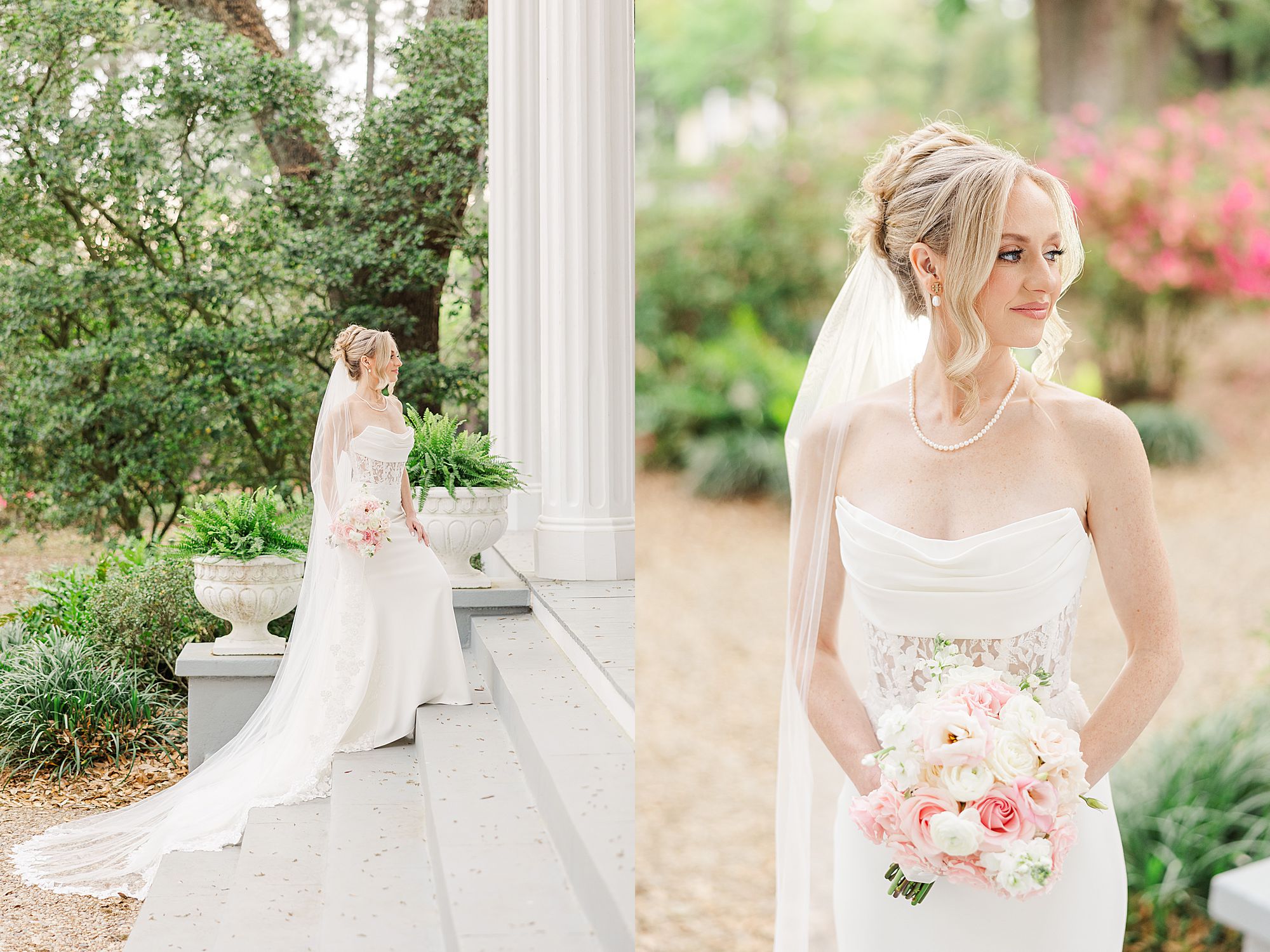 One of the things I love most about bridal sessions at the Bragg Mitchell Mansion is how many beautiful backdrops are all within steps of each other.